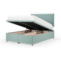 Delivered to a room of choice. A solid platform top base from one of the UK's leading manufacturers. Providing support and a firm foundation for your mattress. Easy to lift end ottoman with ample storage. Finished in a lovely plush velvet fabric with chrome fittings and gliders. This divan includes universal fittings to fit any UK headboard. This product comes with a headboard. Can also be purchased without. Available in Duck Egg, Emerald Green, Graphite, Marine Blue, Natural or Silver in all sizes. Self assembly required. Base height 33cm (35cm with gliders). Headboard face height 70cm. | Bedmaster Plush Velvet Ottoman Divan Base & Plain Headboard in Duck Egg Blue | Size: Double - Manufacturers part number: Bedmaster_7867870377150