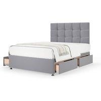 Delivered to a room of choice. A solid platform top base from one of the UK's leading manufacturers. Providing support and a firm foundation for your mattress. Finished in a lovely plush velvet fabric with chrome fittings and gliders. This divan is universal meaning the headboard and storage can be placed on any side. This product comes with an adjustable headboard with struts and 4 Drawers. Can be purchased with or without headboard and with 0, 2 or 4 drawers. Available in Duck Egg, Emerald Green, Graphite, Marine Blue, Natural or Silver in all sizes. Self assembly required. Base height 36cm (38cm with gliders). Headboard face height 70cm. Small Single and Single base 2 drawer option - both drawers are on one side. Double base or larger - 2 drawer option includes 1 drawer each side. Drawer dimensions - H 27cm x W 52cm x L 82cm. Drawer volume 60 litres. | Bedmaster Plush Velvet 4 Drawer Divan Base & Square Headboard in Silver | Size: Super King - Manufacturers part number: Bedmaster_7867870624247