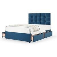 Delivered to a room of choice. A solid platform top base from one of the UK's leading manufacturers. Providing support and a firm foundation for your mattress. Finished in a lovely plush velvet fabric with chrome fittings and gliders. This divan is universal meaning the headboard and storage can be placed on any side. This product comes with an adjustable headboard with struts and 4 Drawers. Can be purchased with or without headboard and with 0, 2 or 4 drawers. Available in Duck Egg, Emerald Green, Graphite, Marine Blue, Natural or Silver in all sizes. Self assembly required. Base height 36cm (38cm with gliders). Headboard face height 70cm. Small Single and Single base 2 drawer option - both drawers are on one side. Double base or larger - 2 drawer option includes 1 drawer each side. Drawer dimensions - H 27cm x W 52cm x L 82cm. Drawer volume 60 litres. | Bedmaster Plush Velvet 4 Drawer Divan Base & Square Headboard in Blue | Size: Super King - Manufacturers part number: Bedmaster_7867870646027