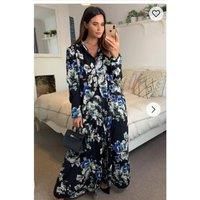 Showcasing a vibrant all-over floral print, this generous sized shirt-dress features a button-through front and oversized design. Available in S/M (UK 812) and M/L (UK 1418), its versatile and effortlessly chic for daytime or evening wear | CY Women's Floral Print Long Shirt Dress In Floral Print in Black | Size: Large/XL