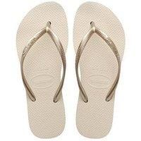 Havaianas Slim Flatform Flip Flop - Beige Did someone ask for comfort with a fashionista touch Bet on the Havaianas Slim Flatform! Besides having a 3 cm sole, the sandal has thinner metallic straps and is available in a color palette ranging from neutral to vibrant colors. For you to walk around comfortably, without losing style. Material Content: 100% Rubber Washing Instructions: Machine Washable The classic Havaianas shape with a little extra height. Elevate your look this Summer. Comfortable, lightwe...