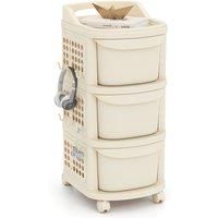 Gymax 3-Drawer Utility Cart Rolling Plastic Organizer With 6 Hooks in Cream