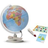 This illuminated talking Globe with Ting Pen features 6 language options and 8 different subject matters. Complete with a white plastic base and arc. Provides spoken information on 8 different subject matters, such as population, capital cities, country names, languages spoken, political and physical geographic points of interest, as well as other important social and cultural points of interest. - Manufacturers part number: _