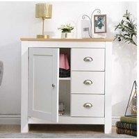 Multi-Room Use: Ideal for living rooms, bedrooms, kitchens, or dining rooms. Sleek Finish: Modern white and oak look fits any dcor. Display Surface: Top surface doubles as a display shelf. Durable Chipboard: Built from high-quality, water-resistant chipboard. Easy Self-Assembly: Flat-packed with clear instructions included. Spacious Storage: 1 door and 3 drawers for easy organisation.