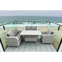 Adjustable Reclining Chair: The reclining armchair features an adjustable backrest ranging from 90 to 130, allowing you to find the perfect angle for relaxation. Elegant & Durable Design: This 4-piece rattan recliner sofa set is crafted from high-quality PE rattan and sturdy galvanised steel, making it a stylish and long-lasting addition to any garden or patio. Versatile Rising Table: The height-adjustable lifting table (140L x 80W cm) can be easily adjusted to function as a coffee table or dining table...
