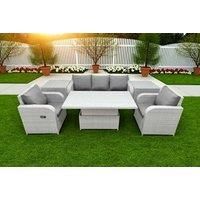 Premium Materials for Durability: Made with high-quality PE rattan and galvanised steel frames with a powder coating to resist rust, ensuring long-lasting use even in challenging UK weather. Complete 6-Piece Lounge Set: This set includes a 3-seater sofa, two reclining chairs, two side tables, and a height-adjustable lifting table, perfect for both relaxing and dining in your garden. Adjustable Recliners for Maximum Comfort: The reclining chairs feature a slope-back design, allowing you to adjust the bac...