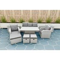 Spacious 9-Piece Highback Sofa Set: Includes two reclining chairs, a 3-seater sofa, one large footstool, two fully assembled stools, two side tables, and a height-adjustable lifting table, perfect for versatile garden setups. Comfortable and Low Maintenance: Features 8 cm thick seat cushions with removable covers for easy cleaning, while the lightweight and modular design ensures effortless rearrangement to suit any outdoor space. Functional Lifting Table: The table's adjustable height (68 cm to 48 cm)...