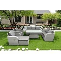 Adjustable Reclining Chairs: The two armchairs feature an adjustable backrest from 90 to 130, offering customised comfort for relaxation. Spacious 8-Seater Garden Set: Includes 2 reclining chairs, a love sofa, a 3-seater sofa, a big footstool, and a lifting table, perfect for outdoor dining and lounging. Reliable Warranty & Customer Support: Thoroughly checked before shipping. Our customer support team is available to assist with any issues within 24 hours. Premium Quality & Weather-Resistant: Crafted f...