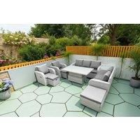 Premium Quality & Weather-Resistant: Made from high-quality PE rattan with a galvanised steel frame and rust-resistant coating, ensuring long-lasting durability. Adjustable Reclining Chairs: The two armchairs offer adjustable backrests from 90 to 130, allowing you to relax in comfort. Spacious 10-Seater Garden Set: Includes 2 reclining chairs, a love sofa, a 3-seater sofa, a big footstool, 2 fully assembled stools, a side table, and a lifting table, perfect for outdoor gatherings. Reliable Warranty & Cu...