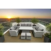 Versatile 2-in-1 Rising Table: The height-adjustable table (140L x 80W cm) transforms from a coffee table to a dining table, offering flexibility for various outdoor occasions and activities. Durable & Weather-Resistant: Made from high-quality PE rattan and galvanised steel, this set is designed to withstand the UK's weather conditions and maintain its appeal over time. Spacious 7-Person Seating: This deluxe rattan loveseat and 3-seater sofa set provides comfortable seating for up to 7 people, perfect ...