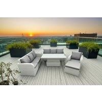 Spacious 8-Seater Set: Features two 3-seater sofas, a reclining chair, a big footstool & a side table, perfect for outdoor lounging & dining. Durable & Stylish Build: Handwoven PE rattan & a galvanised steel frame ensure longevity, while the tempered glass top adds elegance. Adjustable Reclining Chair: Customise comfort with a reclining mechanism that adjusts from 90-130 for ultimate relaxation. Versatile Lifting Table: Switch between coffee table (48 cm) & dining table (68 cm) to suit any outdoor occas...