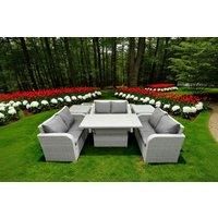 Multi-Height Adjustable Table: The lifting table adjusts between 48 cm and 68 cm for different seating arrangements. 6-Seater Rattan Set with Side Table: Includes three loveseat sofas, a side table, and a lifting table for convenience. Extra Side Table Included: A side table offers additional space for refreshments and decorative items. Durable Handwoven Rattan: PE rattan with a galvanised steel frame ensures long-term outdoor use. Compact & Functional Seating: Loveseat sofas provide a cosy seating arra...