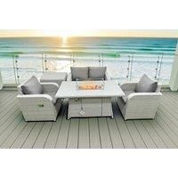 Elegant and Comfortable Design: This 4-seater high back garden sofa set includes two reclining chairs, a loveseat, a side table, and a firepit dining table, offering a stylish and practical solution for outdoor relaxation. Reclining Chairs with Adjustable Backrests: The two reclining chairs allow backrest adjustment from 90 to 130, providing personalised comfort for lounging or socialising. Durable and Low Maintenance: Made with galvanised steel frames and handwoven PE rattan, this set is sturdy and wea...