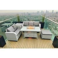 Low-Maintenance & Easy to Clean: Weather-resistant cushions with removable covers. Spacious Seating for Comfort: Loveseat and 3-seater sofa with plush 8CM cushions. Functional Firepit Dining Table: A stylish, gas-powered firepit perfect for outdoor dining. Flat-Packed for Convenience: Simple setup with all required parts and instructions. Premium Handwoven Rattan: Light grey rattan paired with a powder-coated steel frame.