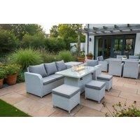 Low Maintenance & Easy Assembly: Delivered flat-packed with simple instructions for quick assembly. Removable cushion covers allow easy cleaning, while a rain cover is recommended for protection when not in use. Ultimate Comfort with Plush Cushions: The 8 cm thick seat cushions and soft pillow-back cushions offer superior comfort. The ergonomic design provides excellent support for long hours of lounging. Modern Firepit Dining Table: Equipped with a gas firepit, this spacious table provides warmth and a...