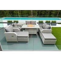 Quality Guaranteed: Factory-direct sales ensure premium craftsmanship, with responsive customer support available for assistance with assembly, damaged items, or missing parts within 24 hours. Firepit Dining Table: The integrated firepit table provides warmth and ambience, ideal for outdoor entertaining. Designed for use with a 5 kg gas tank to ensure safety and efficiency. Seating for Eight: This set includes two reclining chairs, two love sofas, large footstools, a side table, and a firepit dining tab...