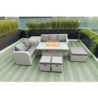 Low Maintenance & Easy Assembly: Delivered flat-packed with easy-to-follow assembly instructions. The removable cushion covers allow for hassle-free cleaning, and the furniture can be covered for extended durability. Premium Firepit Table with Lava Rocks: Features a high-quality gas firepit built into a glass-top dining table, designed for warmth and ambience while using a 5 kg gas tank for safe and efficient operation. Ultimate Comfort with Thick Cushions: 8 cm thick seat cushions and plush back cushio...