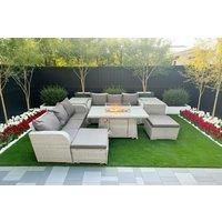 Firepit Convenience: A firepit table adds functionality and style to your gatherings. Guaranteed Quality: Factory-tested furniture with after-sales support ensures satisfaction. Modern Aesthetic: Light grey rattan with dark grey fabric complements outdoor spaces. Flexible Seating: Includes a large footstool and reclining chairs for versatile garden arrangements. Low Maintenance: Cushions are removable and washable for easy upkeep.