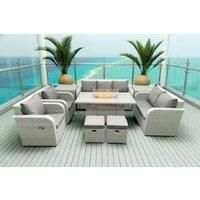 Flat-Packed & Easy to Assemble: Secure packaging with clear instructions. Functional Firepit Table: Provides warmth while serving as a convenient dining surface. Luxury Reclining Chairs: Two adjustable recliners with ergonomic support. Durable & Weatherproof PE Rattan: Stylish and long-lasting light grey handwoven rattan. Weather-Resistant & Easy to Clean: Washable cushion covers for effortless maintenance.