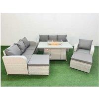 Low Maintenance: Removable cushion covers and tempered glass ensure easy cleaning and upkeep. Functional Firepit Design: The firepit dining table adds warmth and functionality to your outdoor setup. High-Quality Construction: Crafted from flat PE rattan with galvanised steel frames for durability and weather resistance. Spacious 10-Seater Layout: Includes 3 three-seater sofas, a big footstool, and a firepit dining table for ample seating. Unparalleled Comfort: 8 cm thick cushions and soft backrests prov...