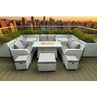 Low Maintenance Design: Easy-to-clean tempered glass surfaces and removable cushion covers ensure convenience. Complete Outdoor Set: Comes with 3 love sofas, 1 big footstool, 2 stools, 2 side tables, and a firepit dining table to accommodate 9 people. Weather-Resistant Materials: Designed with durable PE wicker and galvanised steel frames to withstand outdoor conditions. Superior Comfort: Features 8 cm thick cushions and ergonomic designs for luxurious seating. Stylish Firepit Table: Enhances your outdo...