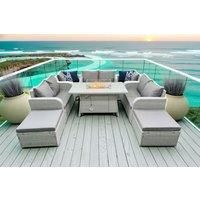 Easy Maintenance: Features removable cushion covers and a tempered glass table top for effortless cleaning and upkeep. Weatherproof Build: Crafted with durable PE wicker rattan and galvanised steel frames to ensure longevity in various weather conditions. Functional Firepit Table: A versatile firepit dining table adds warmth and a contemporary touch to your garden space. Spacious 8-Seater Design: Includes 3 love sofas, 2 big footstools, and a firepit dining table to enhance your outdoor living experienc...