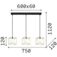 3-bulb pendant light Lingotto in a trendy contrasting design with three cages As a contemporary, eye-catching light source with contrasting design features, the Lingotto pendant light is an eye-catcher for living rooms and lounges. The hanging light has three separate cube-shaped frames made of metal and finished in black. Inside each frame is a spherical lampshade. The opal glass diffuses the warm white light of the enclosed G9 LED bulb homogeneously.