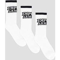 Emporio Armani Bodywear 3 Pack Crew Socks Size & Fit True to size - order your usual size Available in one size Details 3 Pack Crew Socks by Emporio Armani Bodywear White 3 x multipack Plain sport socks Cushioned Products must be returned unworn, unwashed, in their original condition with all tags and original order packing slip We reserve the right to refuse returns that show signs of wear or do not meet the above criteria Material & Care Material Content: 67% Cotton 28% Polyamide 5% Elastane Washing I...