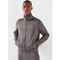 Armani Exchange Piped Track Top - Grey Size & Fit True to size - order your usual size Regular fit Available in sizes S - 2XL (S:36", M:38", L:40", XL:42", 2XL:44") Model is 6'2" and wears a size Medium (M) Details Piped Track Top by Armani Exchange Grey Funnel neckline Zip up fastening Long sleeves Side slip pockets Piping detail Material & Care Material Content: 54% COTTON, 46% POLYESTER