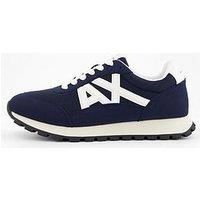 Armani Exchange Drop Logo Suede Runner Trainers Size & Fit True to size - order your usual size Standard fit Available in sizes 6 - 12 Details Drop Logo Suede Runner Trainers by Armani Exchange Navy Lace fastening Sneaker made with a mix of materials, designed for those seeking a dynamic aesthetic and long-lasting comfort. The design is inspired by the world of training, with an upper that combines breathable technical fabric and soft suede inserts, creating a sophisticated play of textures. The maxi AX...