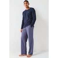Emporio Armani Bodywear Yarn Dyed Woven Long Pyjama Set Size & Fit True to size - order your usual size Regular fit Available in sizes S - XL Details Yarn Dyed Woven Long Pyjama Set by Emporio Armani Bodywear Dark Blue Long sleeves Crew neck Straight cut Elasticated waist detail Pull on fastening Checked print Material & Care Material Content: 100% COTTON