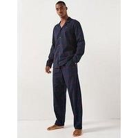 Emporio Armani Bodywear Tartan Flannel Woven Pyjama Set Size & Fit True to size - order your usual size Regular fit Available in sizes S - XL Details Tartan Flannel Woven Pyjama Set by Emporio Armani Bodywear Navy Single Long sleeves Revere collar Straight cut Elasticated waist Button front fastening Tartan print Material & Care Material Content: 49% VISCOSE, 51% COTTON