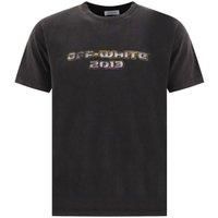 Stay stylish with this Off-White Slim Fit T-shirt. Featuring an iconic Painting on the Back, this Tee is sure to be a conversation starter. Show off your unique style! Iconic Logo On Front and Back Off-White Faded Black Tee, Slim Fit 100% Cotton, Made In Portugal, Crew Neck, Streetwear, Short Sleeve Style Code: OMAA027F23JER0061084 | Off-White Men Bacchus Slim Black T-Shirt | Size: Small