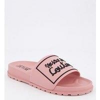 Versace Jeans Couture Script Logo Sliders Size & Fit True to size - order your usual size Standard fit Available in sizes 35 - 41 (EU 35:UK 2, EU 36:UK 3, EU 37:UK 4, EU 38:UK 5, EU 39:UK 6, EU 40:UK 7, EU 41:UK 8) Details Script Logo Sliders by Versace Jeans Couture Pink Round open toe Chunky sole Slip on fastening Material & Care Material Content: SOCK:70%EL,30%PU - SOLE:70%EL,30%PU - Washing Instructions: Wipe Clean