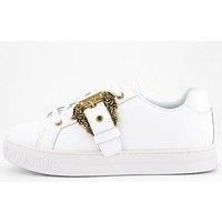 Versace Jeans Couture Buckle Detail Trainers Size & Fit True to size - order your usual size Standard fit Available in sizes 36 - 41 (EU 36:UK 3, EU 37:UK 4, EU 38:UK 5, EU 39:UK 6, EU 40:UK 7, EU 41:UK 8) Details Buckle Detail Sneaker by Versace Jeans Couture White Round closed toe Buckles Lace fastening Material & Care Material Content: LINING:90%PL,10%PU - SOCK:100%PIGSKIN - SOLE:100%RUBBER - Washing Instructions: Wipe Clean