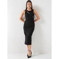 Versace Jeans Couture Buckles Basque Midi Dress Size & Fit True to size - order your usual size Midi length Available in UK sizes: S: 8; M: 10; L: 12; XL: 14 Details Buckles Basque Midi Dress by Versace Jeans Couture Black Sleeveless design Round neckline Cut-out detail Back zip fastening Decorative ornate buckles Panel waist Back split hem Material & Care Material Content: TESSUTO 1:64% VI 31% PA 5% EA -