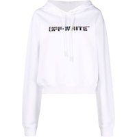 Stay warm and stylish with this Off-White Hoodie. Featuring a contemporary design and the iconic Logo, this hoodie is sure to be a conversation starter. Show off your unique style!., OW Logo On Chest, Drawstring Adjustable Hood, Large Front Kangaroo Pocket, Regular Fit, 100% Cotton, Made In Italy, Streetwear, White Hoodie, Hooded Jumper | Off-White Women's Geometric Logo Cropped White Hoodie | Size: XS - Manufacturers part number: Off-White_8052865729444