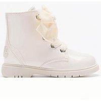 Lelli Kelly Fior Di Fiocco Stivale Size & Fit Available in sizes 9 younger - 1 older Half sizes available in selected sizes Details Fior Di Fiocco Stivale by Lelli Kelly Beige Round closed toe ankle boot Side zip fastening for easy on/off Laces with large bow at the front and a gold diamante flower in the centre Tonal sole unit completes the look Lining: Textile Sole: Other Materials Upper: Other Materials