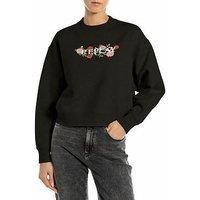 Replay Brushed Fleece Logo Sweatshirt Size & Fit Size & Fit True to size - order your usual size Relaxed fit Slightly cropped Available in sizes XXS - XL Details Brushed Fleece Logo Sweatshirt by Replay Black Pure brushed cotton Crew-neck Long sleeves Dropped shoulders Rib-knit neck, cuffs and hem Embellished with a Replay logo print surrounded by roses in the centre of the chest Material & Care Material Content: 100%Cotton; Washing Instructions: Machine Washable Gentle Wash At 30 - Manufacturers part number: WPLY0