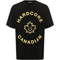 Dsquared2 Hardcore Canadian Maple Leaf Black T-Shirt. D2 Short Sleeved Black Tee. Slouch Fit, Oversize Fit Style. 100% Cotton. Large Hardcore Canadian Maple Leaf Logo Design. S74GD0569 S22427 900