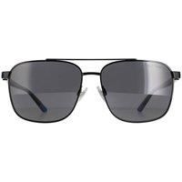 The PH3135 900381 Shiny Black Grey Polarized are a modern style crafted from lightweight metal. The double bridge design and adjustable nose pads guarantee a comfortable fit. Polo's emblem at the temples ensures brand authenticity. | Polo Ralph Lauren Men Aviator Shiny Black Grey Polarized PH3135
