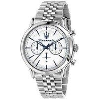 Maserati GENTS EPOCA CHRONOGRAPH EPOCA CHRONOGRAPH WHITE DIAL Case Diameter (in cm): 4.2 Case height (in cm): .1 Case Shape: Round Case Width (in cm): 4.2 Fastening Type: Bracelet Glass: Mineral Movement: Japanese Quartz (battery) Strap Material: Stainless Steel Water Resistant: Y 42mm CASE CHRONOGRAPH 100M WATER RESISTANT STAINLESS STEEL CASE AND BRACELET SCREW CASE BACK AND CROWN