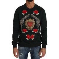 This Dolce Gabbana sweatshirt is a statement piece Crafted from a luxurious cotton blend it features intricate embroidery of roses and cross pistols embellished with sequins and beads The central motif is a jeweled Sacred Heart adding a unique and captivating touch The rich dark green color and detailed embellishments make this sweatshirt a perfect choice for those who appreciate highend fashion and bold statements. Made from 100% cotton for a comfortable and breathable feel . Features a bold design fea...