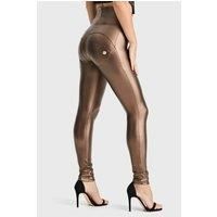 Our fan favourite faux leather high waisted trousers has a metallic finish thats also animal friendly and planet friendly. We have incorporated super soft post-use recycled polyester and elastane fabrics that glide onto your legs with ease, allowing you to stretch and flex with your movements. *True in size *Super High Waisted * Full Length * Material 72% Recycled Polyester 13% Recycled Elastane and 15% Polyurethane * Synthetic-Leather coated fabric * Matte finish * Gun Metal Zip * Pocket details