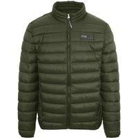 Plein Sport Patch Logo Thin Padded Green Jacket. Experience versatility and style with the Plein Sport Padded Green Jacket! This jacket features a solid design. Stay cozy and chic with the bold logo and padded details. Perfect for any fashion-forward individual.. Zip Closure Pockets, Filling and Material: 100% Nylon. Green Jacket. Padded Jacket, Zip Closure. Style: UPPS103P 32