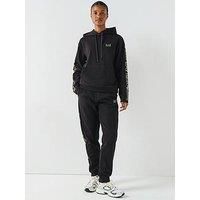 EA7 Emporio Armani Overhead Hoodie Tracksuit - Black Size & Fit True to size - order your usual size Regular fit Available in sizes XS - XXXL Details Overhead Hoodie Tracksuit by EA7 Emporio Armani Black Chest and sleeve branding Hooded with drawstring fastening Long sleeve Front kangaroo pocket Material & Care Material Content: 78% POLYESTER, 22% COTTON Washing Instructions: Machine Washable - Manufacturers part number: WLYNM