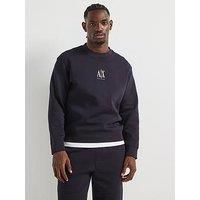 Armani Exchange Icon Project Crew Sweatshirt Size & Fit True to size - order your usual size Regular fit Available in sizes S - 2XL (S:36"", M:38"", L:40"", XL:42"", 2XL:44"") Model is 6'2"" and wears a size Medium (M) Details Icon Project Crew Sweat by Armani Exchange Navy Crew neck collar Contrast logo to chest Long sleeves Seamed hem and cuffs Material & Care Material Content: 79% Cotton, 17% Polyester, 4% Elastane Washing Instructions: Machine Washable - Manufacturers part number: XM000368AF10818UB101XL