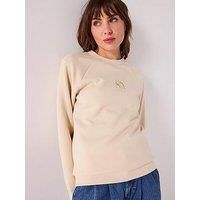 Armani Exchange Logo Sweatshirt Size & Fit True to size - order your usual size Regular fit Available in sizes XS - XL Model is 5'9"" and wears a UK size 8 Details Logo Sweatshirt by Armani Exchange Beige Logo Crew neck Long sleeves Material & Care Material Content: 48% Viscose, 45% Polyester, 7% Elastane Washing Instructions: Machine Washable