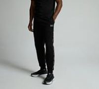 EA7 Logo Tape Series Fleece Joggers in Black. Premium and essential casual wear from EA7, these super-soft luxurious joggers feature an elasticated and adjustable drawstring waistband and rib cuffs for a customised fit. Open hand pockets to sides, side repeat logo branded tape and EA7 box logo to left thigh. Regular fit. Black Size - S