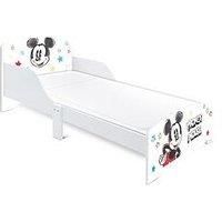 Mickey Mouse Classic Mickey Mouse Wooden Toddler Bed Transform bedtime into a magical adventure! Our toddler bed, crafted from engineered wood with non-toxic paints, features beloved characters, ensuring a safe and enchanting sleep environment. Complete with wooden slats, it's perfect for your little one's sweet dreams! 77X143X60 CM Partial assembly required Fittings & fixings included Made from wood . Recommended for ages 3+ great for both bedroom and playrooms Easy assembly Depth: 177 CM Height: 77 ... - Manufacturers part number: _